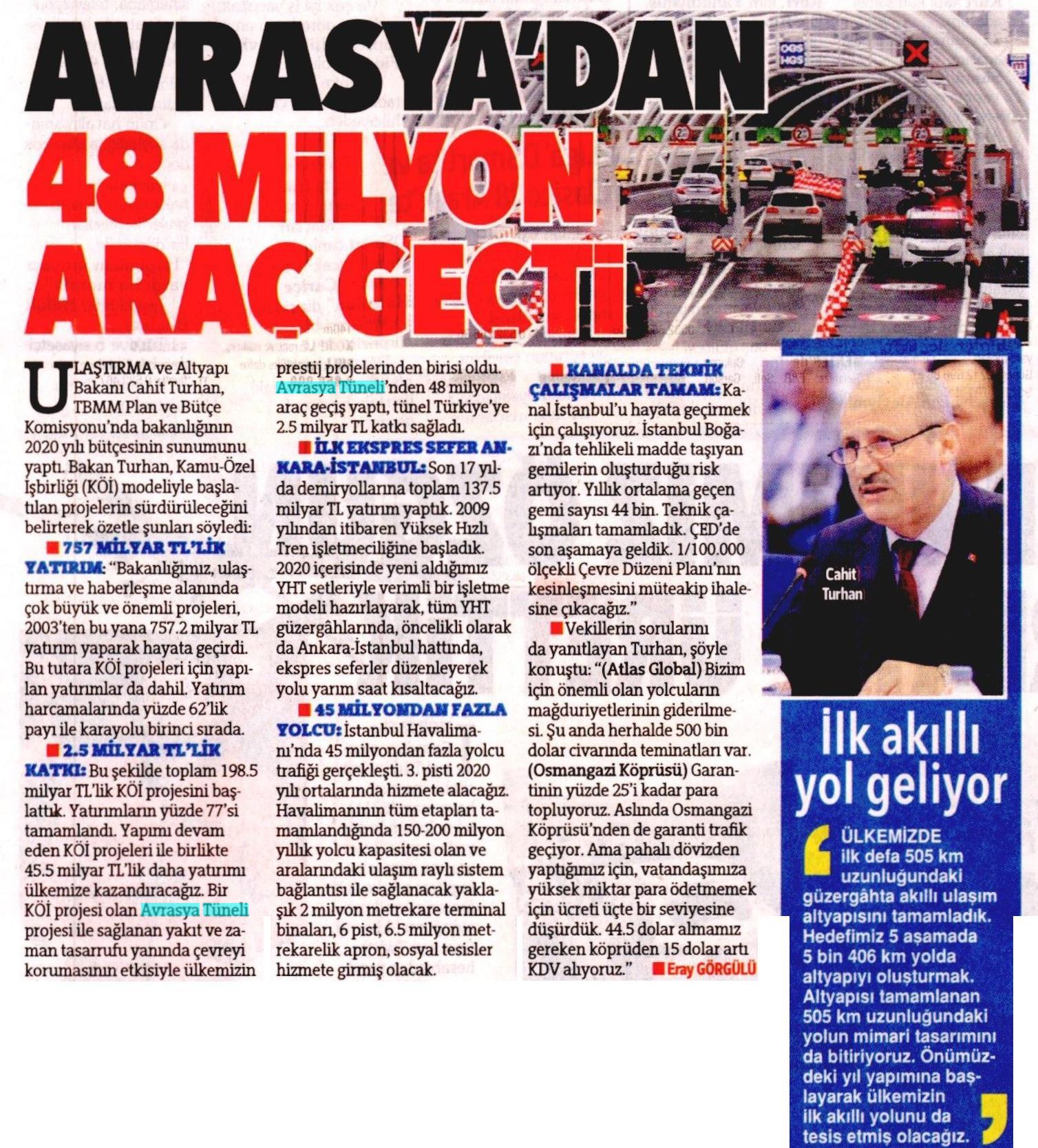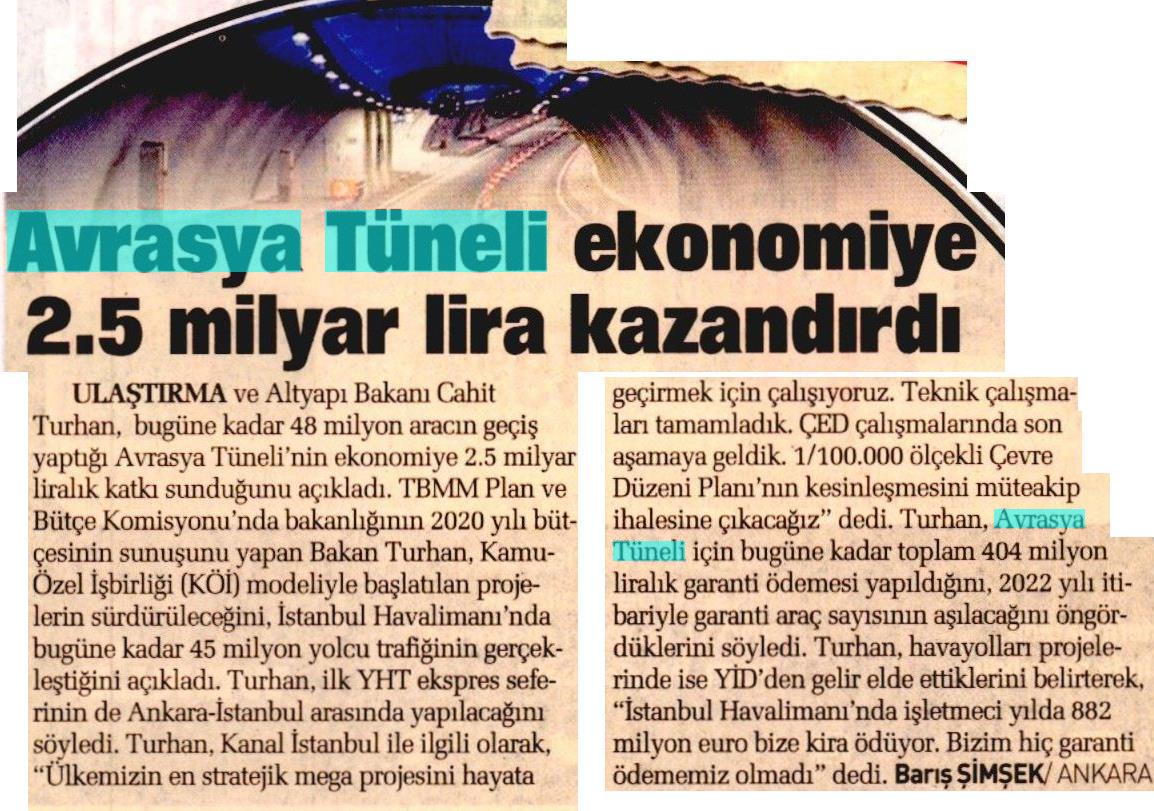 Avrasya Tüneli'yle bu yıl 1.2 milyar lira tasarruf