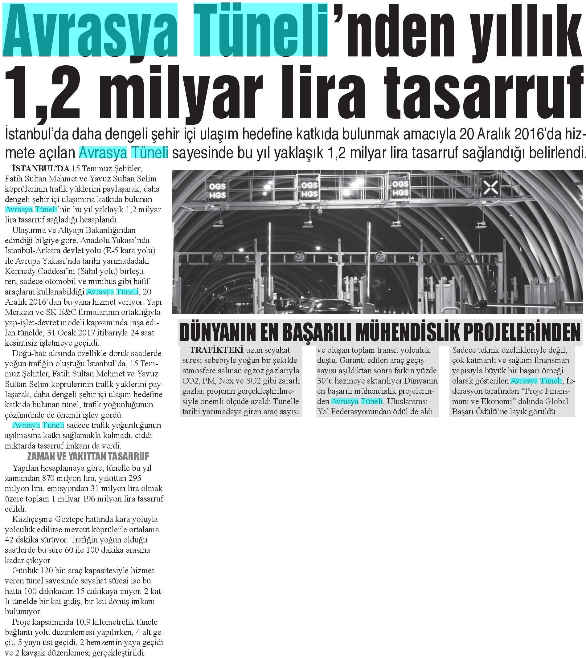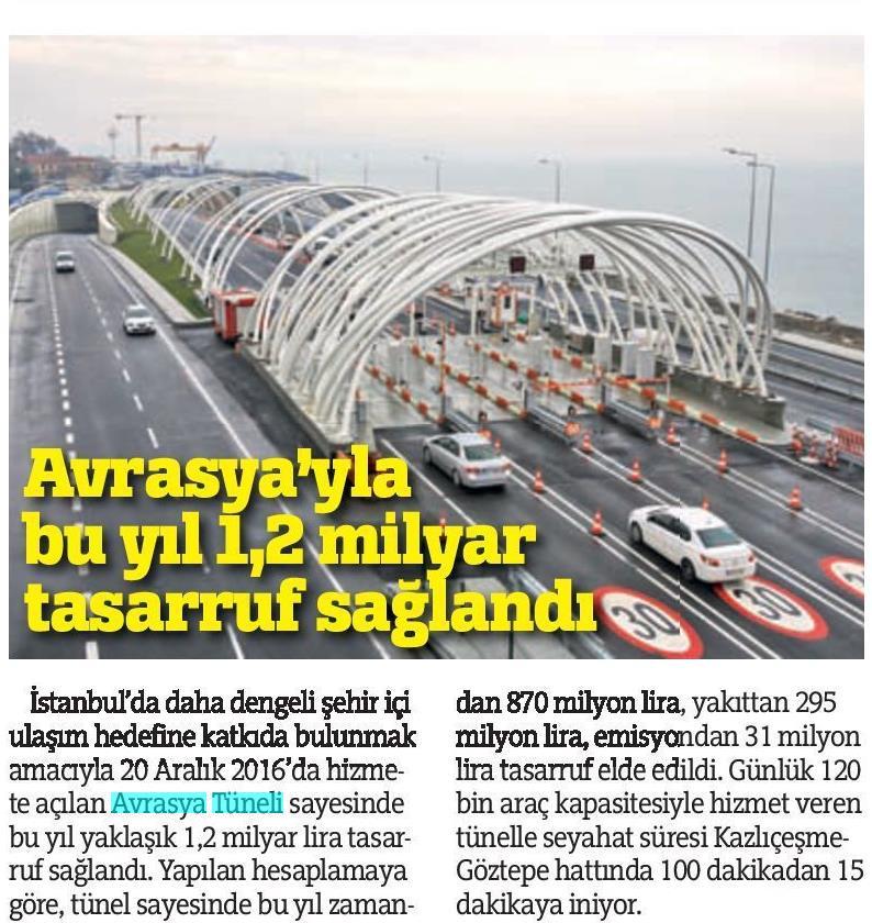 Avrasya'dan yıllık 1.2 milyar tasarruf