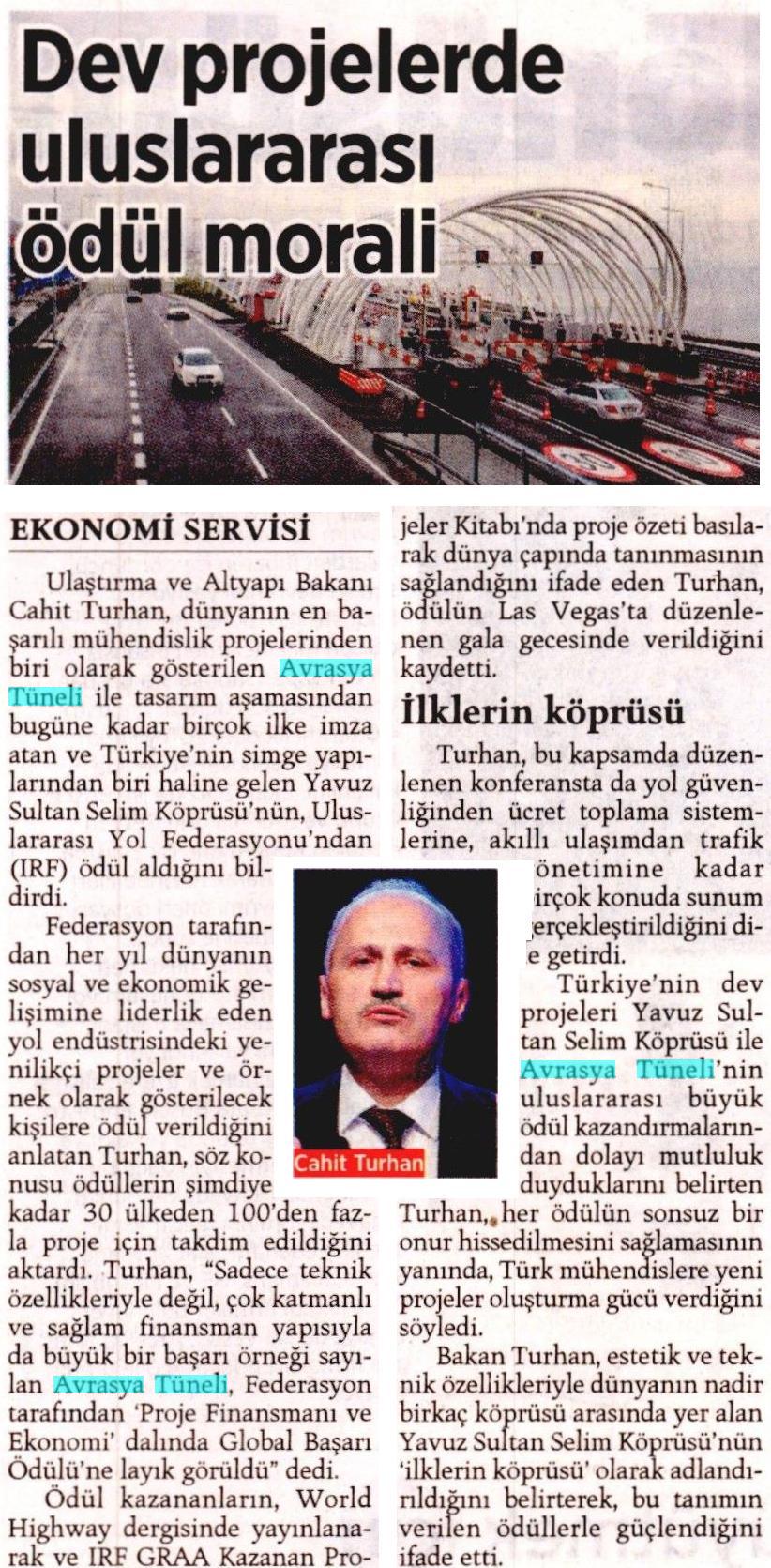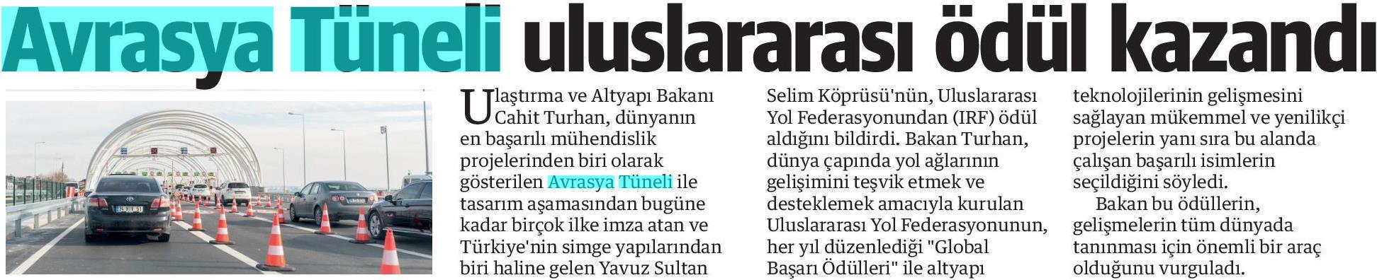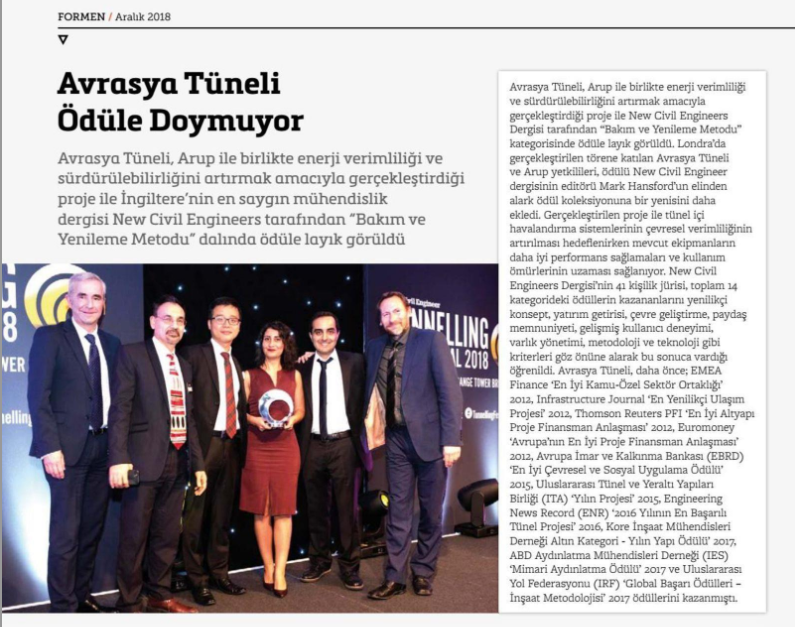 Avrasya Tüneli uluslar arası ödül kazandı