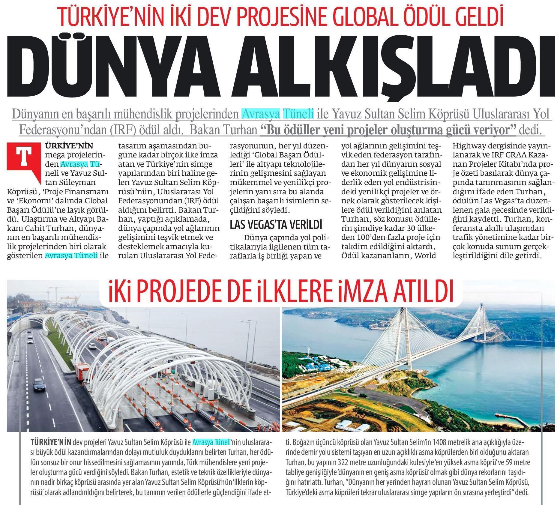 Türkiye'nin iki dev projesine ödül geldi dünya alkışladı