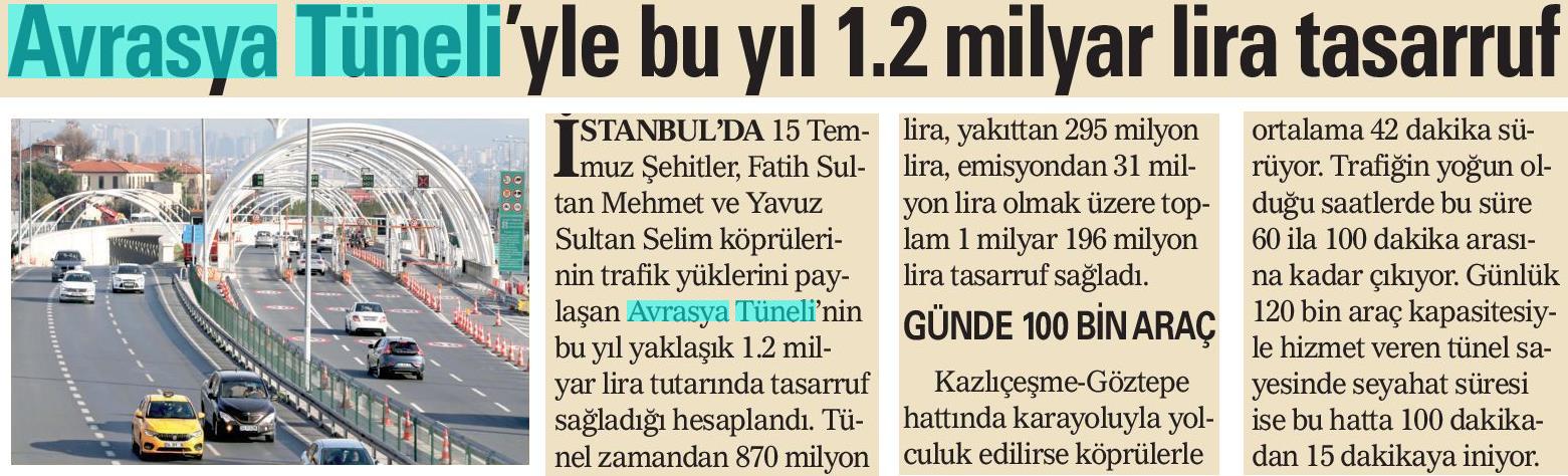 Avrasya'yla bu yıl 1,2 milyar tasarruf sağlandı