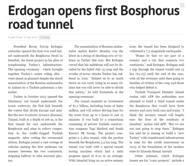 Istanbul's $1.3B Eurasia Tunnel Officially Opens