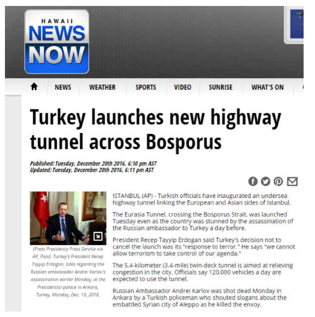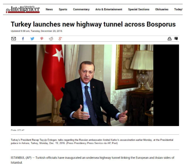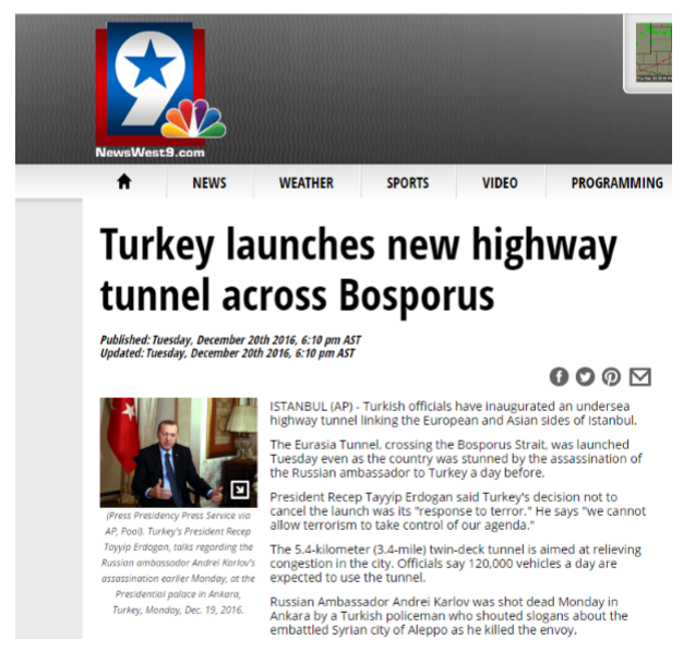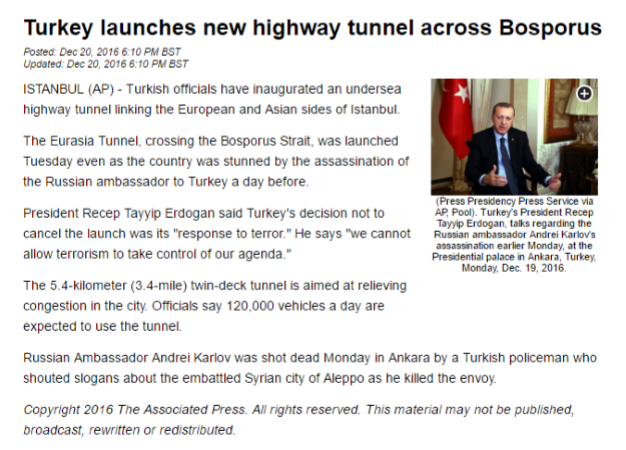Eurasia Tunnel Overshadows Murder Of Russian Envoy In Turkey